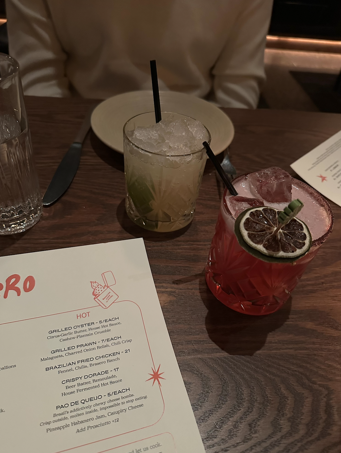 Cocktails - Hibis-Kiss Margarita and Caipirinha: Brasero has a fun cocktail menu with a limited, but creative list. I went with the Hibis-Kiss Margarita which wasn't overly sweet, which is what I tend to prefer. Both cocktails were refreshing and well-made.