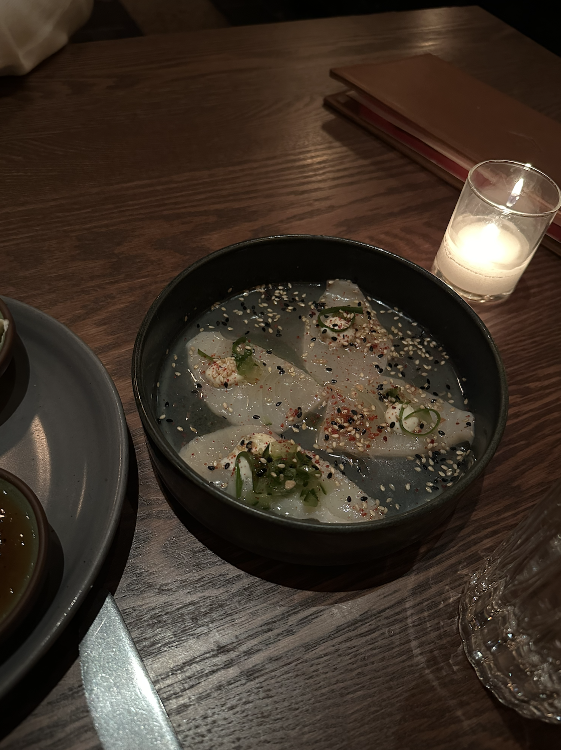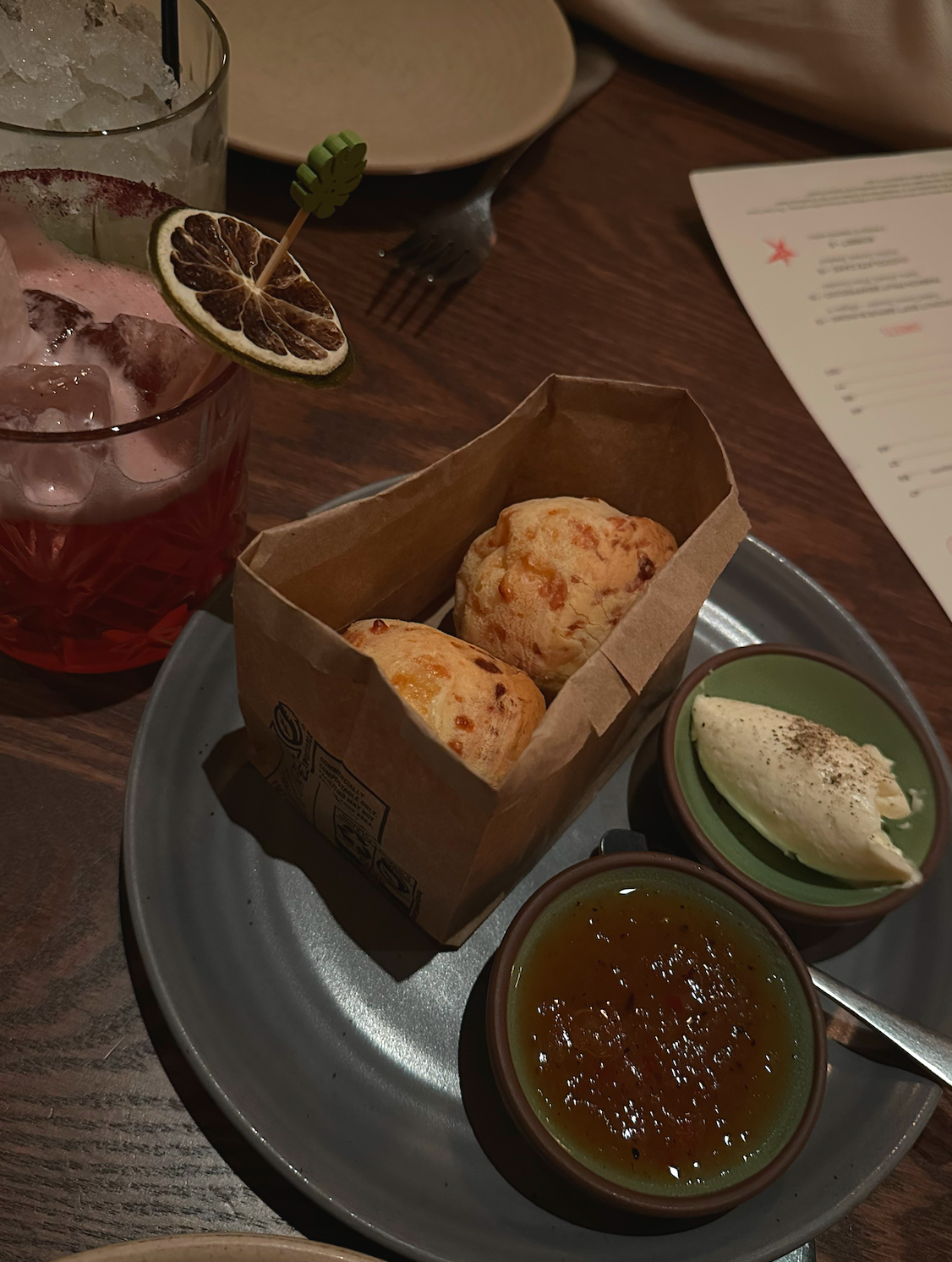 Pao de Quiejo: These traditional Brazilian cheese puffs are made with cassava flour and cheese, giving them that chewy, pillowy texture. Ours came with a side of pineapple habanero jam and catupiry cheese, which had a consistency similar to cream cheese. I enjoyed the pineapple habanero jam paired with the cheese puffs, but the dish was a bit cold. That might be intentional, but I think a little more warmth would have made it better.