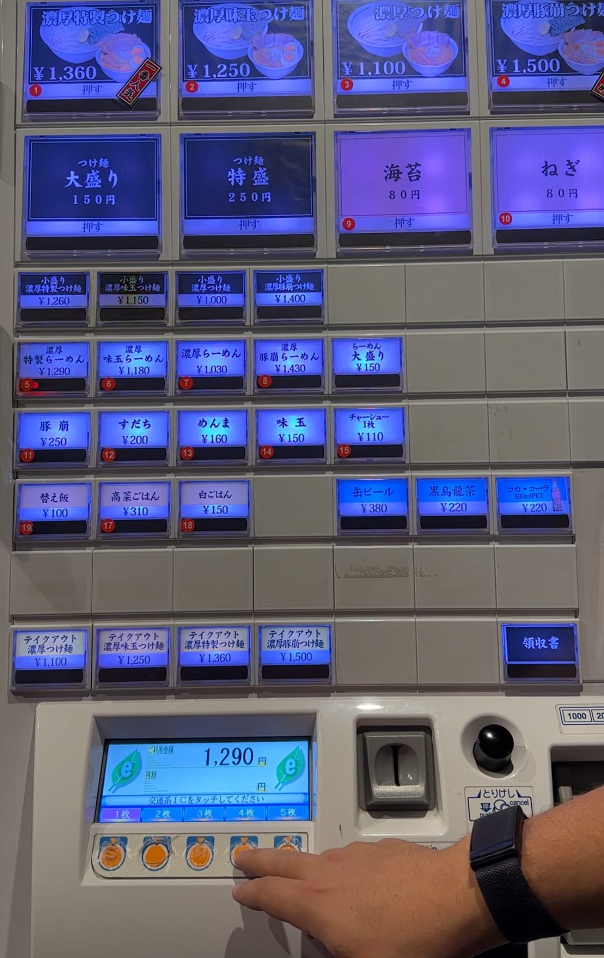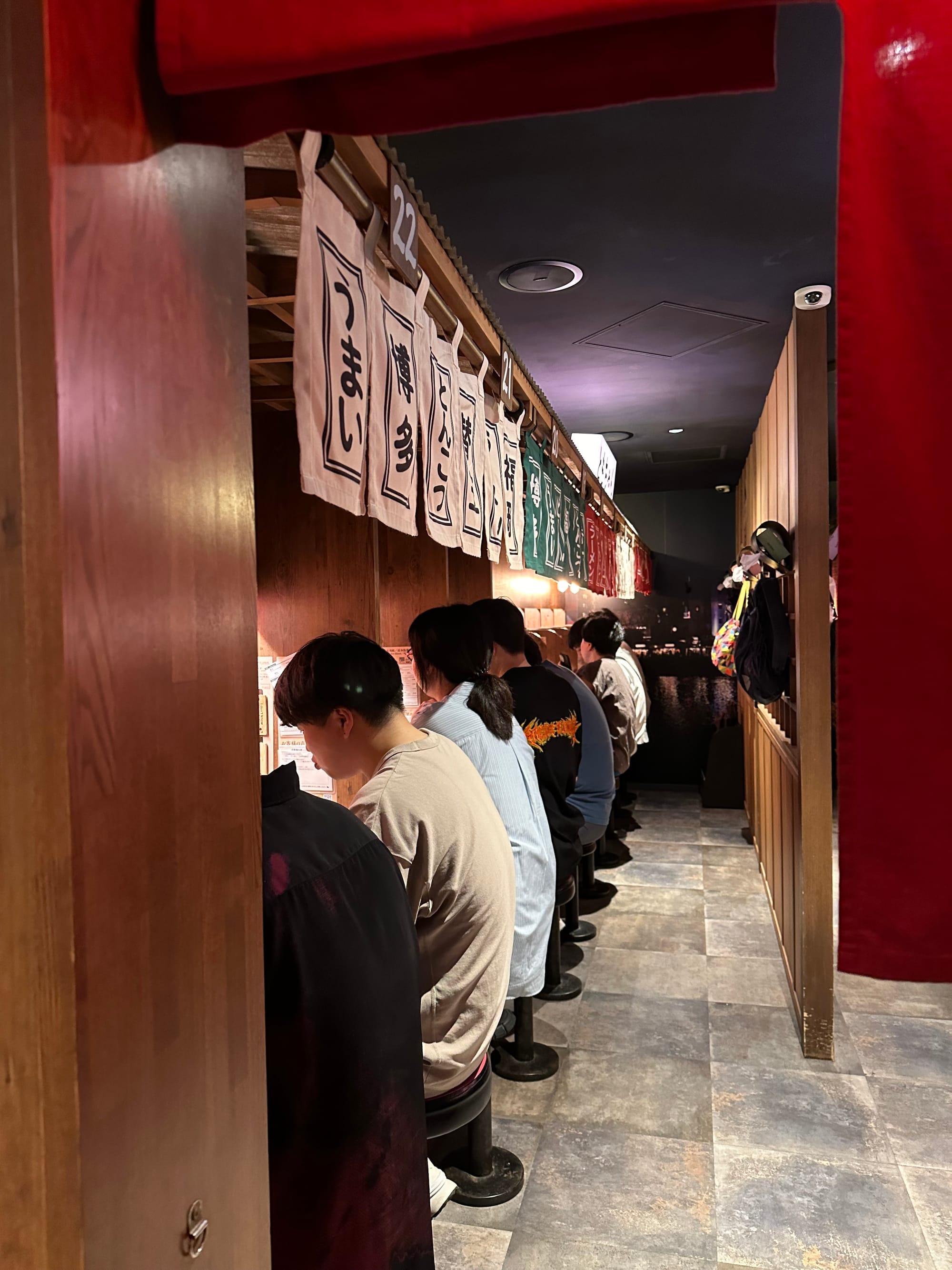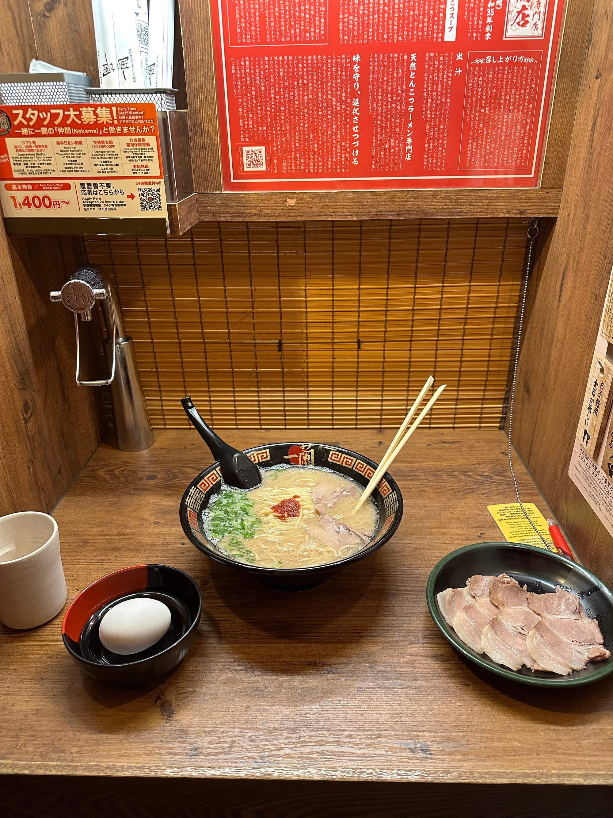 Ichiran Ramen: Ichiran is a famous ramen spot in Tokyo, known for its single booths lined up where you sit in your own private space to enjoy your bowl of ramen. I tried the Tonkotsu ramen, and it was absolutely delicious. It was interesting to see how quickly people came and went, and how this solo dining experience is common at many Japanese ramen shops.