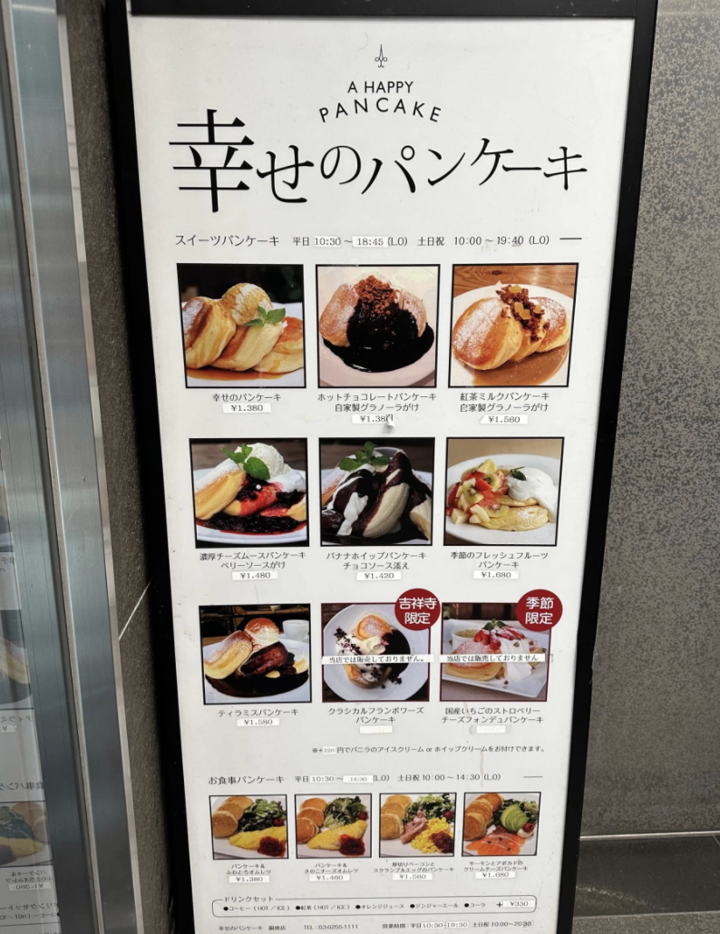 Happy Pancake: We had heard a lot about Happy Pancake and how popular it was in Tokyo. When we arrived, there was a decent line, but I thought it was worth the wait. They offer a variety of both sweet and savory pancakes, but I found the sweet pancake options to be the clear winner. The pancakes were fluffy and airy, with that melt-in-your-mouth texture. If you're a pancake lover, this place is a must-try
