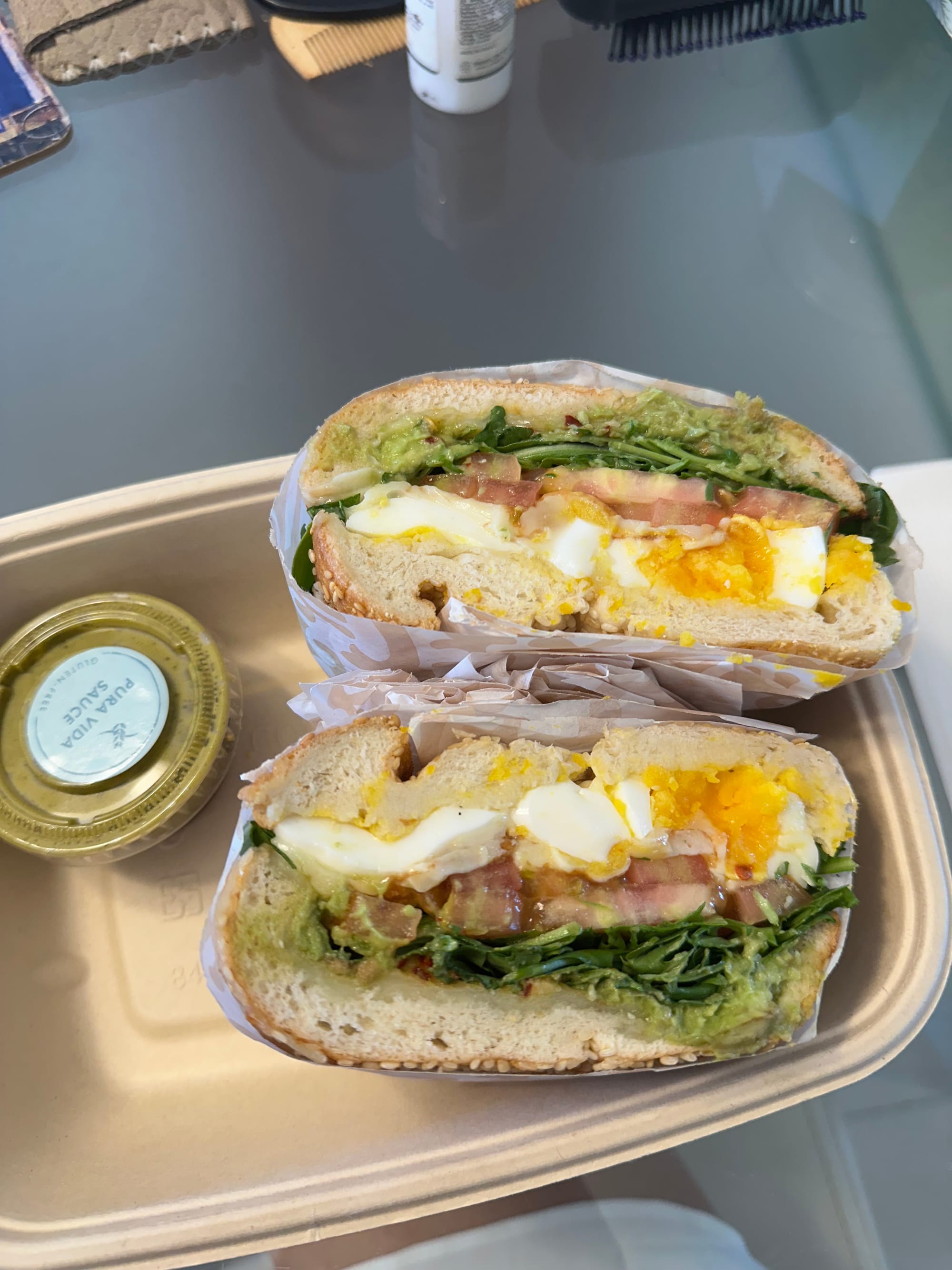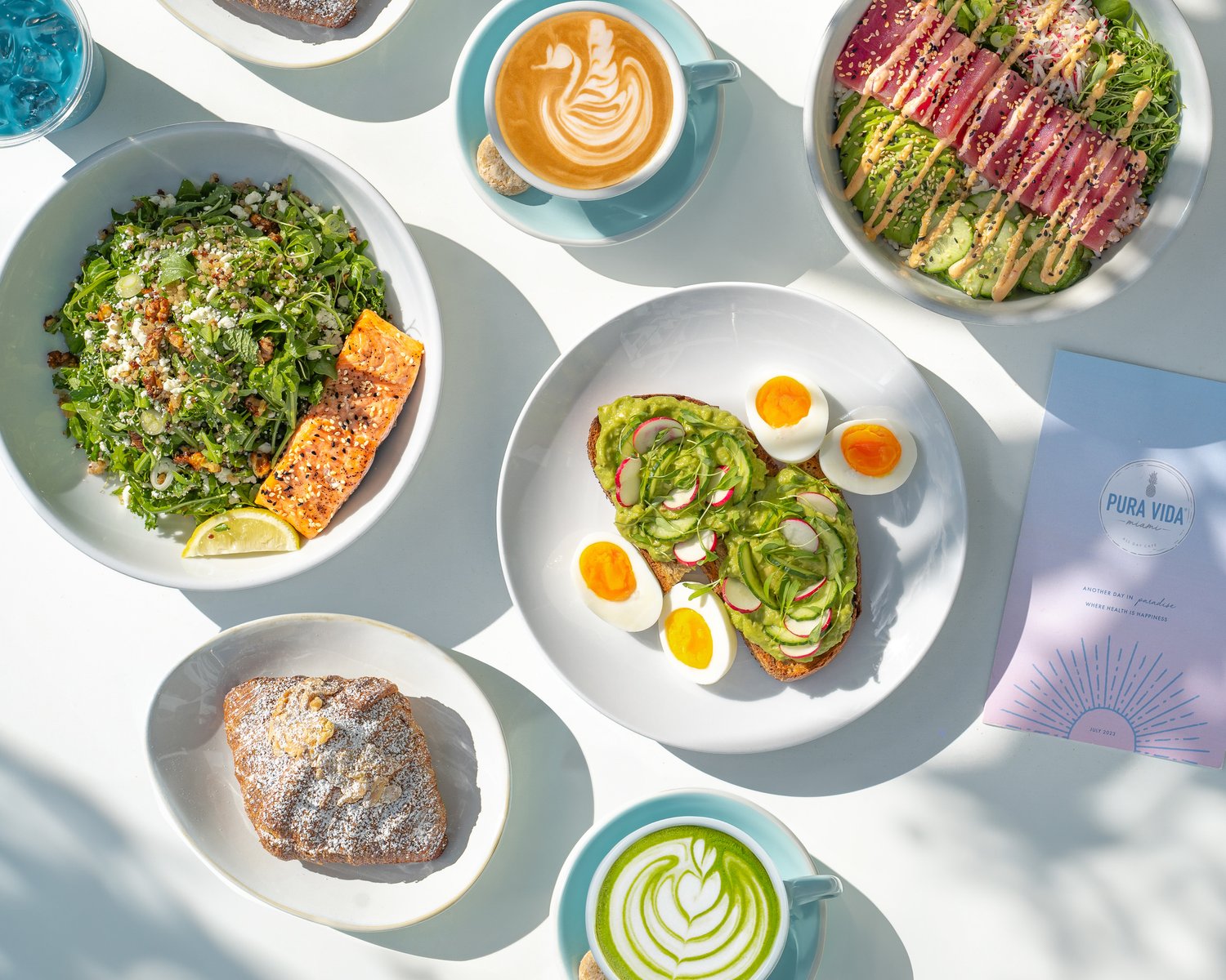 Pura Vida - South Beach: LLike MILA, Pura Vida was one of those places I kept thinking about even after we got home. The iced latte was incredible, and the food didn’t disappoint either. The Perfect Egg Sandwich and the Toasted Chicken Wrap were both delicious, but the real star was the Pura Vida green sauce, it was addicting. It’s a laid-back, casual spot, and we grabbed our orders to-go after the beach, which was perfect. Definitely a go-to for a tasty post-beach bite.