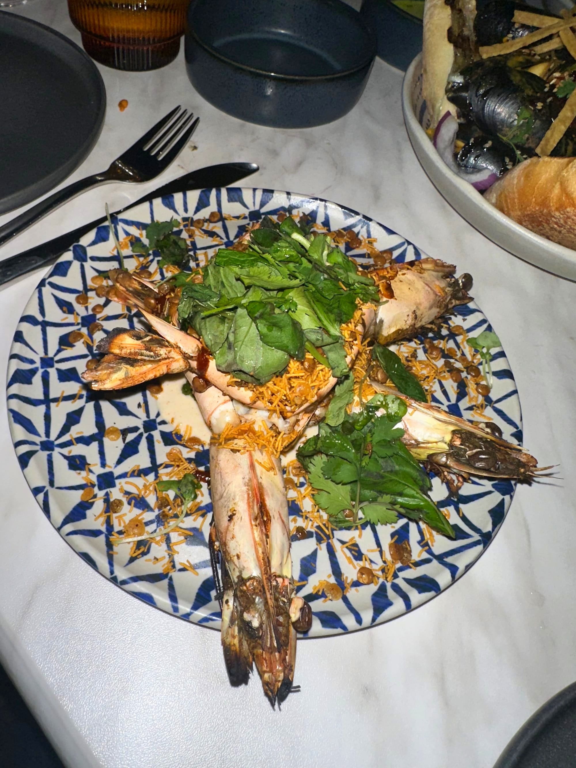 Skull Island Prawn Chaat: I love prawns, and loved the bold flavors the cilantro-mint chutney added to this dish, but this was really difficult to eat and a little messy. The flavor was good, but not sure I would order this again.