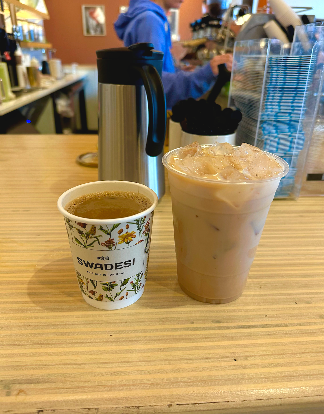 Drinks - Iced Masala Chai and Swadesi Masala Chai: It was hard to pick a drink because they all sounded pretty good, but we ended up going with a classic chai drink. Candidly, I thought these were pretty good, but nothing special. I thought they were lacking the stronger chai flavor I like. I'd still be interested in trying one of their other signature drinks, but the food was the highlight of the cafe for me.