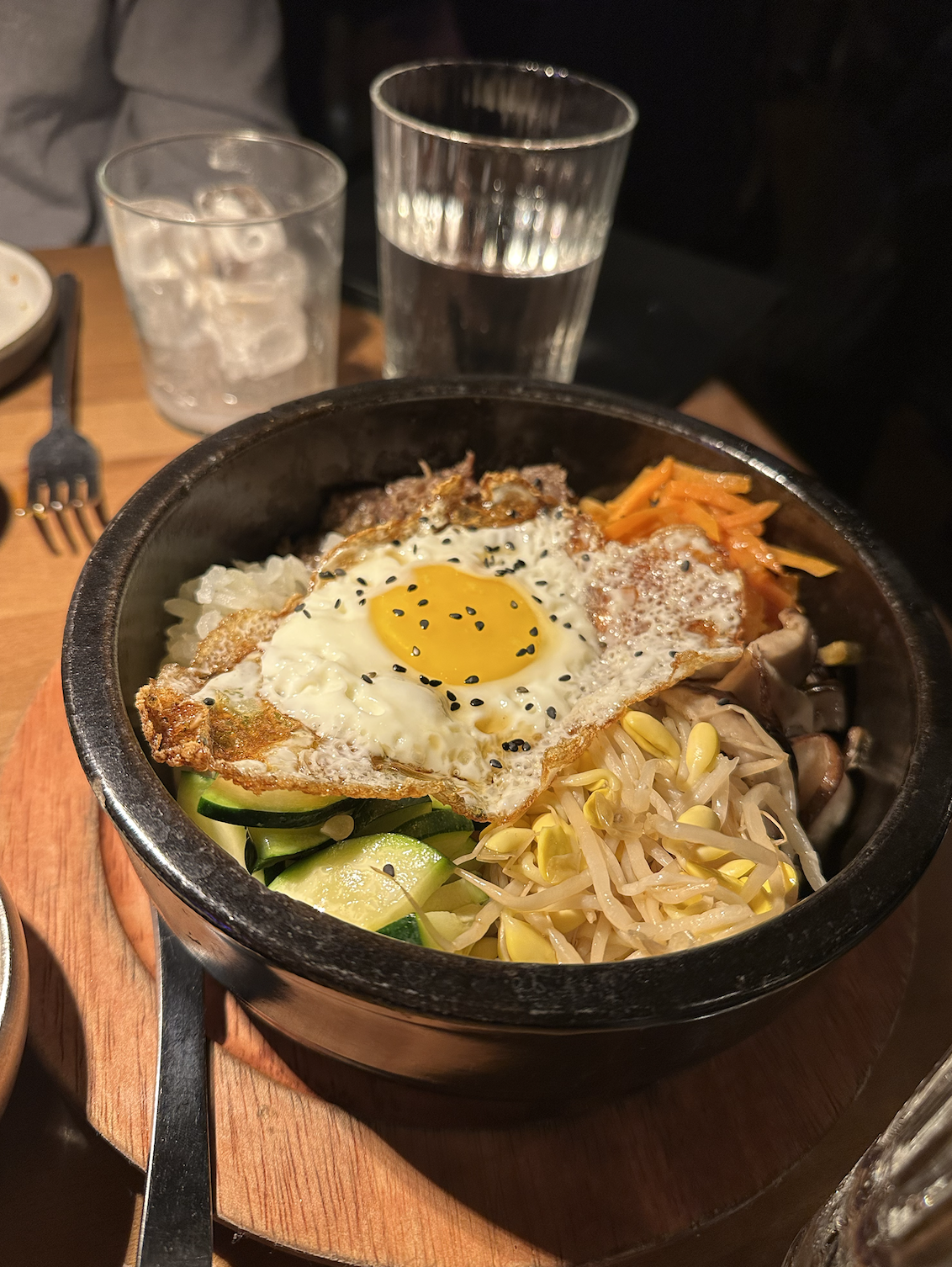 Bulgogi Bibimbap: Bibimbap is a popular Korean dish so we were very excited to try this. It's assorted vegetables, fried egg, gochujang sauce, and we chose bulgogi over tofu as our protein. The gochujang sauce came on the side to mix in and the whole dish was very good. I like how the rice crisps up on the side as it sits in the hot pot over time.