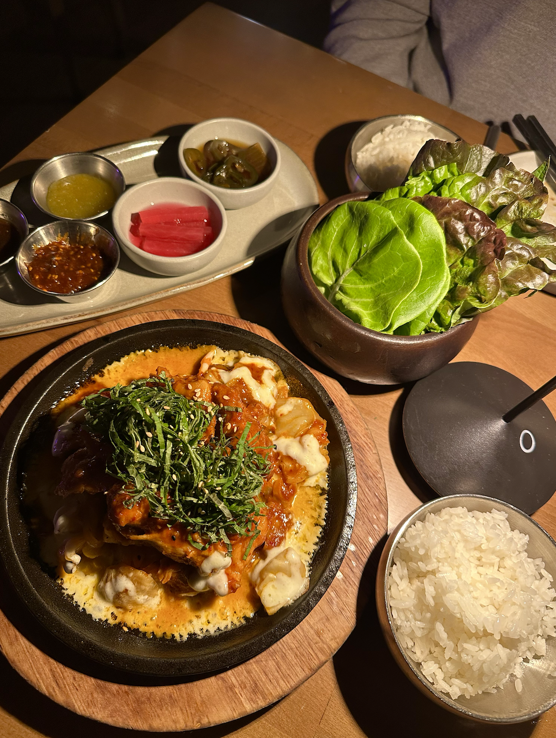 Spicy Chicken + Ssam Platter: This Spicy Chicken dish was incredibly good. It definitely has a good kick to it, but we ordered it with the Ssam Platter that helped balance it out. The Ssam Platter is lettuce wraps, pickles and dipping sauces to accompany the main Korean BBQ dish. I loved how flavor packed this dish was, too.