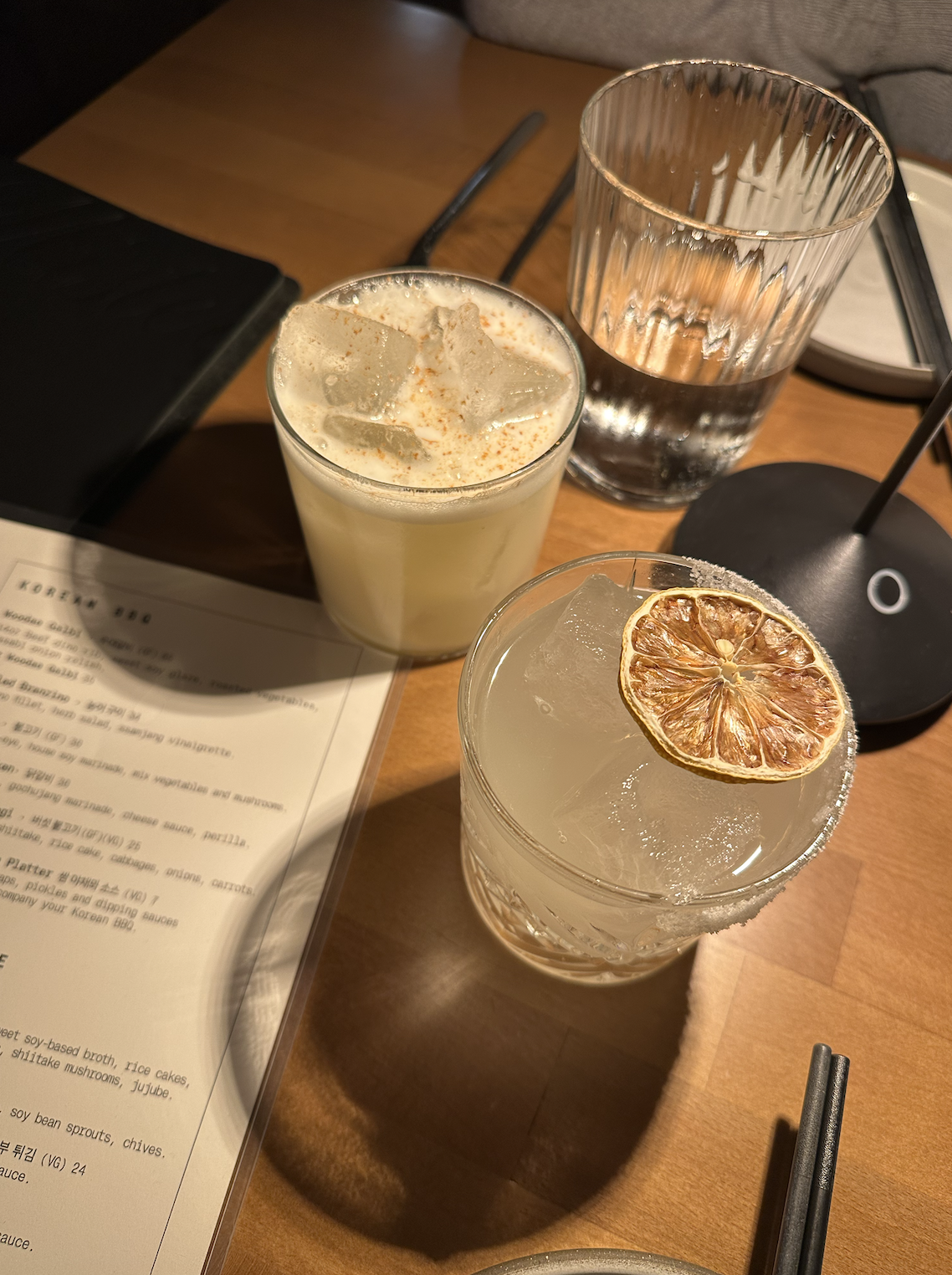 Cocktails - More Rice Please and Yuja Next Door: The More Rice Please is a described on the menu as a "boozy Korean horchata" made with toasted rice grains and soju. For being a sweet cocktail, I was actually pleasantly surprised that it wasn't over the top sweet. The Yuja Next Door is a spin on a margarita with yuzu and wasabi, and I loved this. Both cocktails were creative and good.